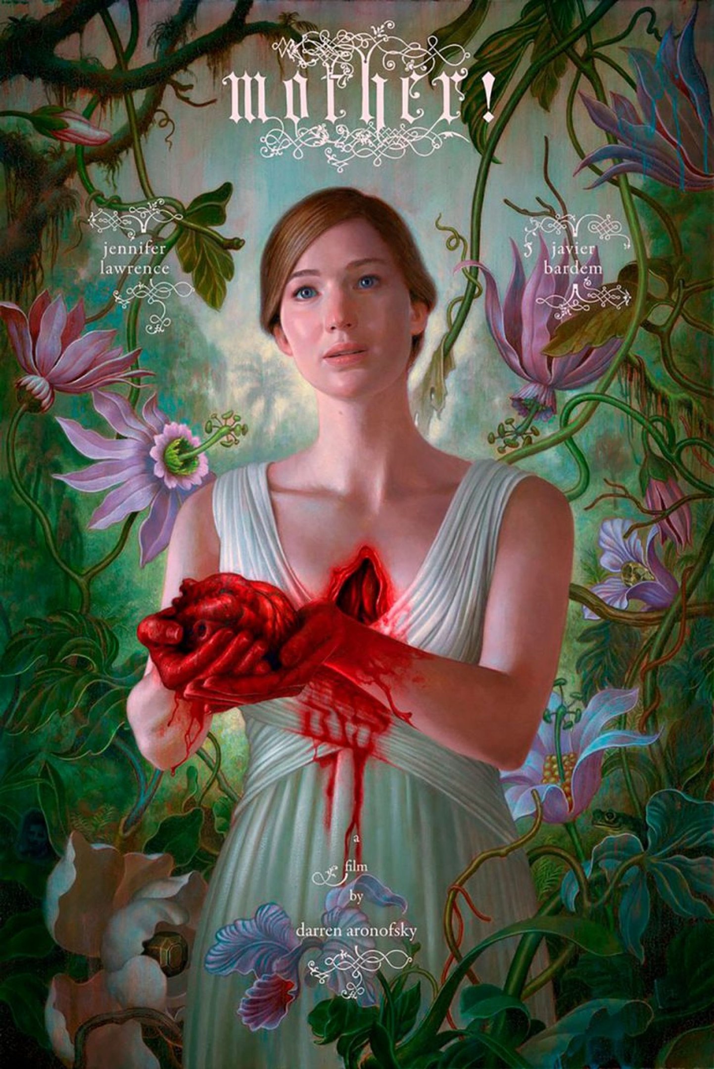 Mother! es una película de Darren Aronofsky. Es la primera película suya que veo y a decir verdad es gracias a ella que me enteré de la existencia del director. Llegué a Mother! gracias a una larga búsqueda de películas de terror psicológico —del cual me enamoré hace poco—, vi el tráiler y estaba en Netflix «¿Por qué no verla?», pensé.